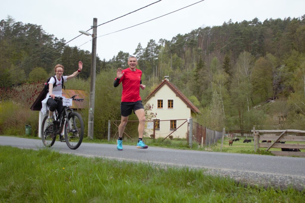 Dvojice jsou dopředu dané a během závodu se nemění. Postupně na trati střídají tak, že každá absolvuje 3 z 9ti úseků. Doprovodné vozidlo mezitím přejede na další předávku. Dvojice absolvuje celý úsek společně, během svého úseku se může libovolně střídá v běhu a jízdě na kole. Na kole vždy jeden jen jeden.